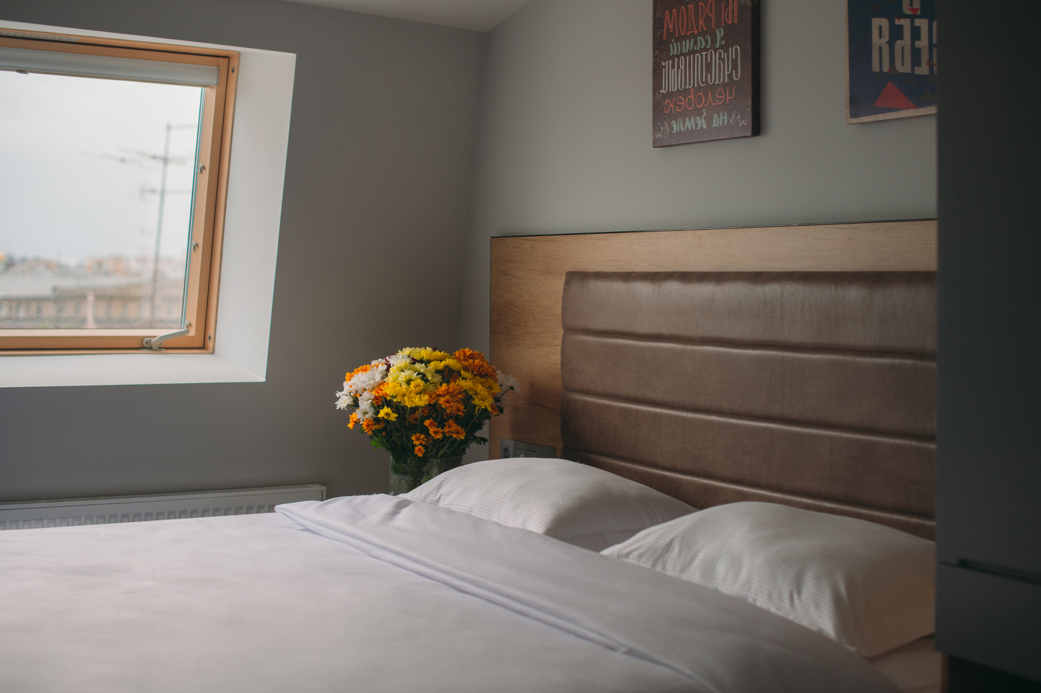 Здесь имеются номера на любой вкус. Среди удобств: Wi-Fi, ТВ, полотенца, наборы гостиничной косметики. По запросу вам предоставят халат. Окна номеров выходят в тихий дворик, или гостям открывается вид на город.